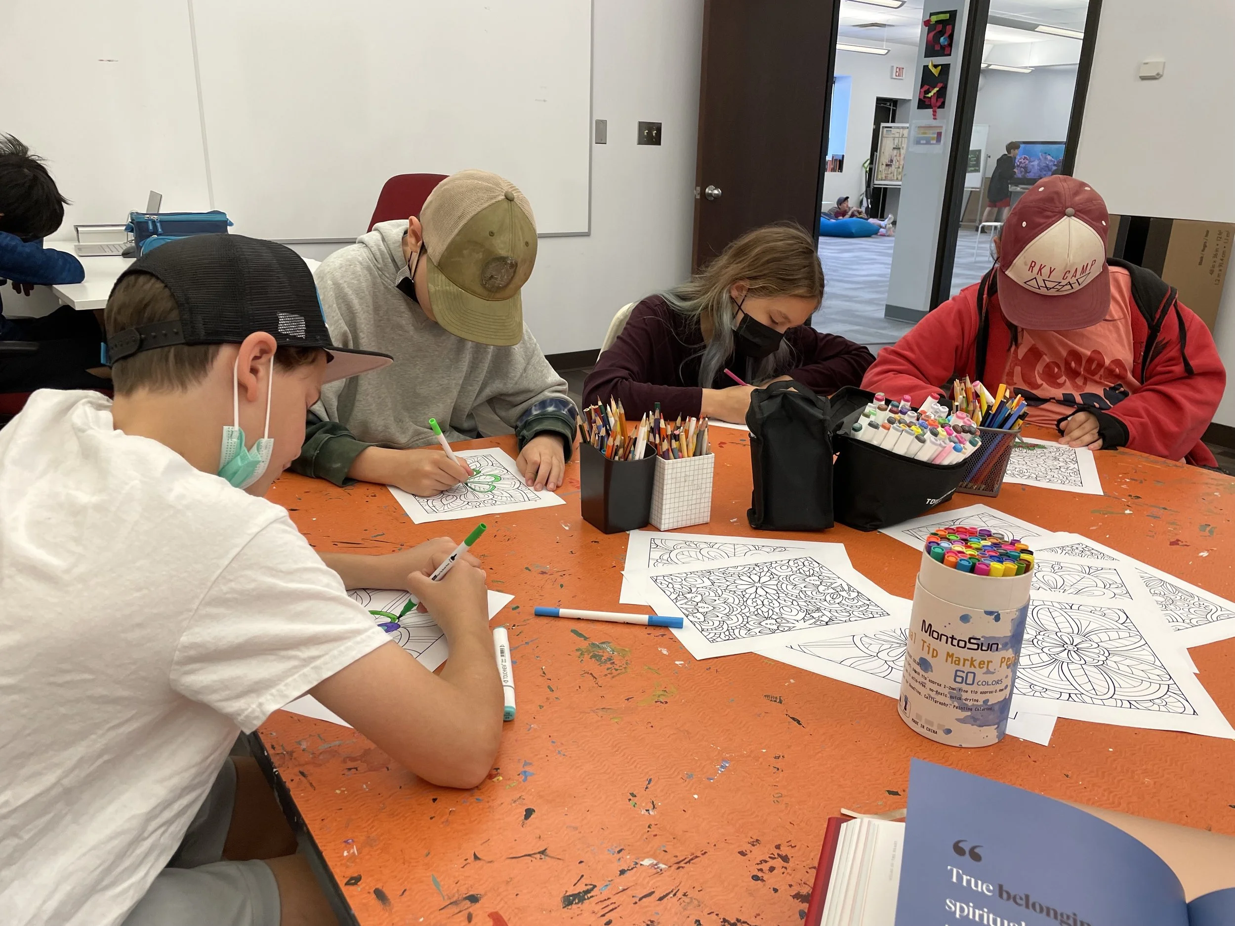 This week, Rebels coloured mandalas while listening to excerpts about belonging vs. fitting in from Brene Brown’s book Atlas of the Heart. Utilizing Brene’s quote, “True belonging is the spiritual practise of believing in and belonging to yourself so deeply that you can share your most authentic self with the world and find sacredness in both being a part of something and standing alone in the wilderness. True belonging doesn’t require you to change who you are; it requires you to be who you are.” Using this as a jumping-off point, each group discussed why belonging is so important and how difficult it can be to be our authentic selves around others.